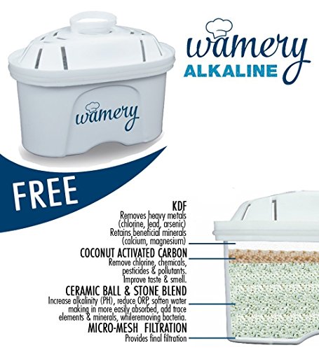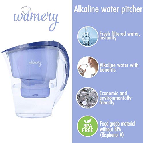 Wamery Alkaline Water Pitcher 1.5 Liters Slim Model Free Filter Included Improves pH Removes Lead Chlorine, Copper and…